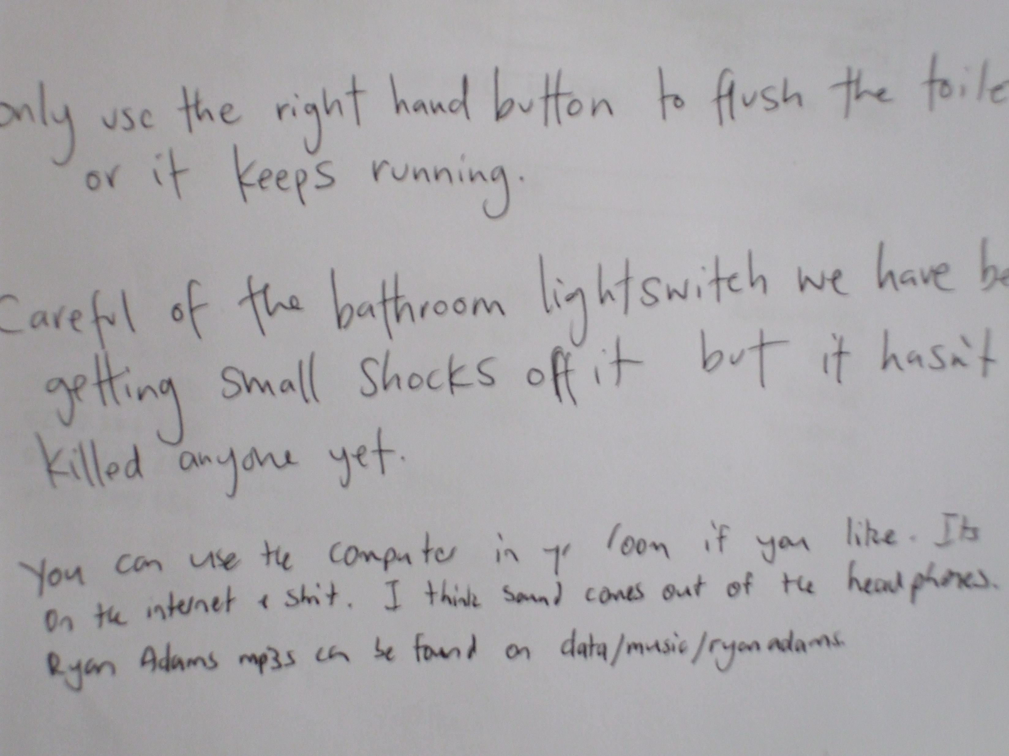 When I arrived in Roslyn, I found a note telling me everything I needed to know about my accommodation. (Scott was still trying to convert me to Ryan Adams. I’ve never fully got him, but I’m glad he’s a fan of The Verlaines.)